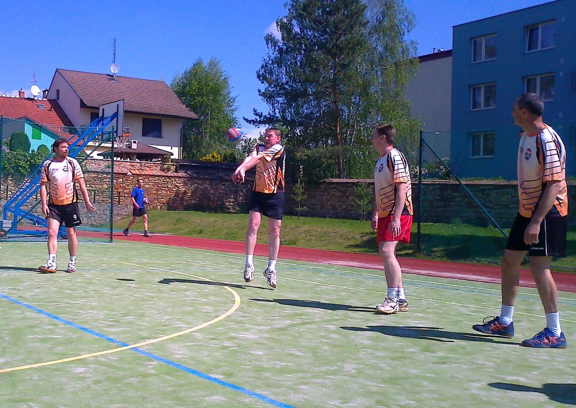V úvodním zápase jarní části soutěže jsme zavítali do Slavkova. Slavkov změnil hřiště s gumovým povrchem za nové, se stejně špatným povrchem. Tentokrát jsme hráli na školní umělé trávě, kde to strrrrašně klouzalo. Povrch dělal problémy oběma družstvům a nemohoucí zákroky a nečakaná podklouznutí byla někdy úsměvná, někdy hororová (ještě že se nikomu nic nestalo). Bohužel se tato skutečnost podepsala i na výkonu obou mužstev, která si dávala větší pozor na to aby si nepřivodila nějaké zranění, než na odvedený úder nebo obranu. Po prvním vyhraném setu jsme se zaměřili na uvedenou skutečnost a dva následující sety jsme prohráli. Do dalšího setu se u obou družstev vystřídali nahravači a hned to bylo poznat na výkonu. Výkon Slavkova šel rapidně dolů a my se začali zvedat. Dva následující sety jsme dotáhli do vítězných konců a odvezli si první jarní výhru.