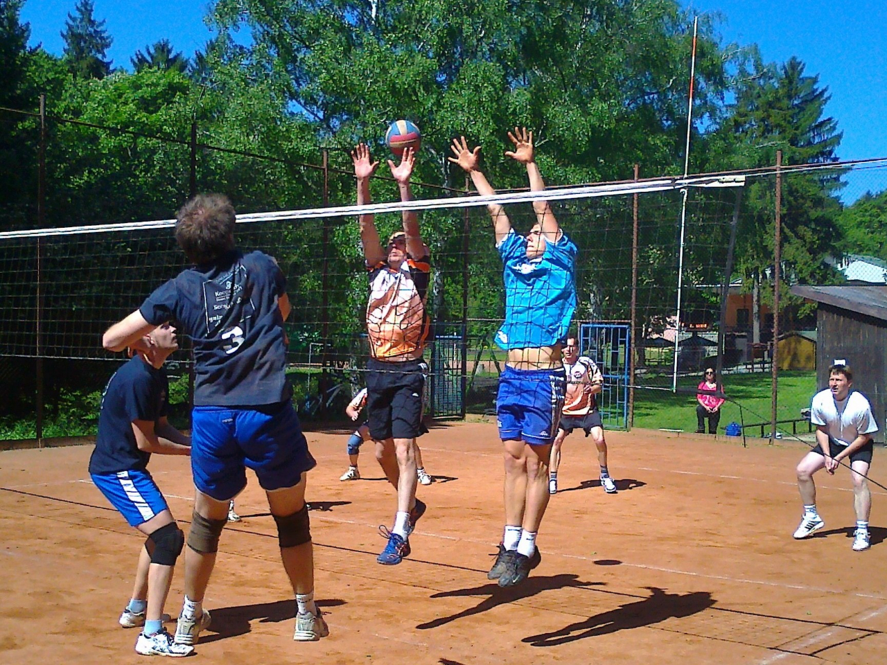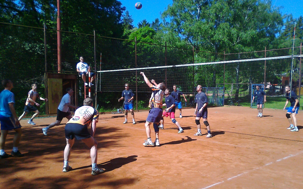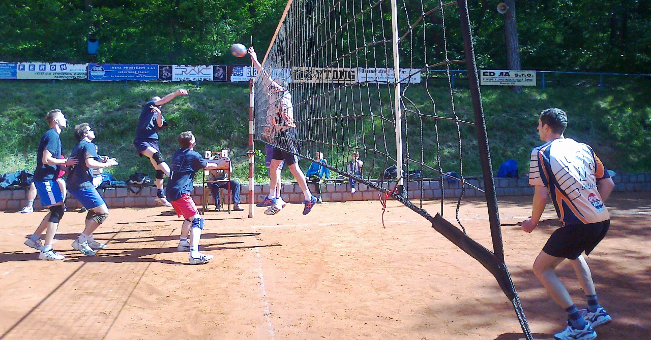 V krásný jarní den, v neděli 19.5, jsme konečně začali jarní část soutěže utkáním s družstvem Slavkova. Počasí nám tentokrát přálo. Sluníčko svítilo, jen vítr byl na volejbal trošku nepříjemný. Při rozpinkání a rozsmečování foukalo až moc. Naštěstí se to během zápasu uklidnilo a na hře obou týmů nebyl "větrný škraloup" ani moc znát. Začali jsme s jistotou a vůbec nebylo poznat, že jsme se od podzimu neviděli resp. jsme spolu ještě nehráli. Ale jak říká nejstarší muž na hřišti Josef Martínek: "...to se nezapomíná". :) První set jsme v vyhráli klidnou jistou hrou, nekazili jsme na příjmu, uhrávali na síti, dokonce jsme měli i nebezpečné bloky. Tak by se vlastně dal popsat celý zápas. Před utkáním jsme měli ze soupeře respekt, na podzim jsme na jejich hřišti prohráli, ale domácí prostředí nám také svědčilo. Takže výhra 3:0 byla krásným začátkem další části soutěže. :)